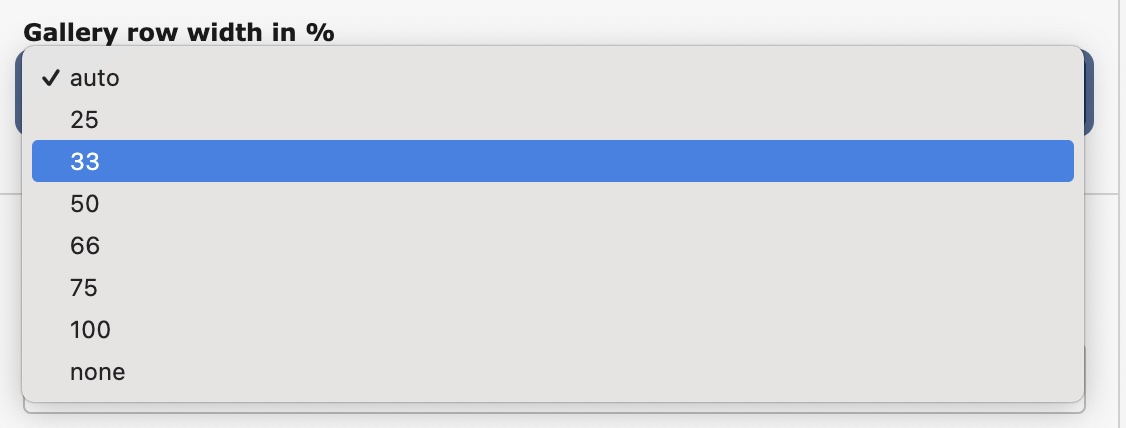 Damit "auto" (die automatische Berechnung der Galerie-Breite) funktioniert, muss dieses in den Site-Settings aktiviert werden.