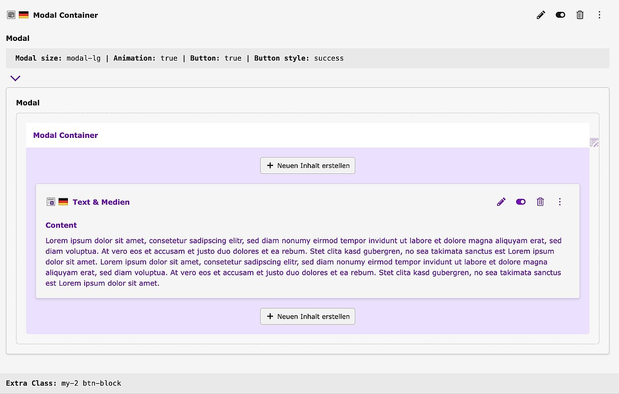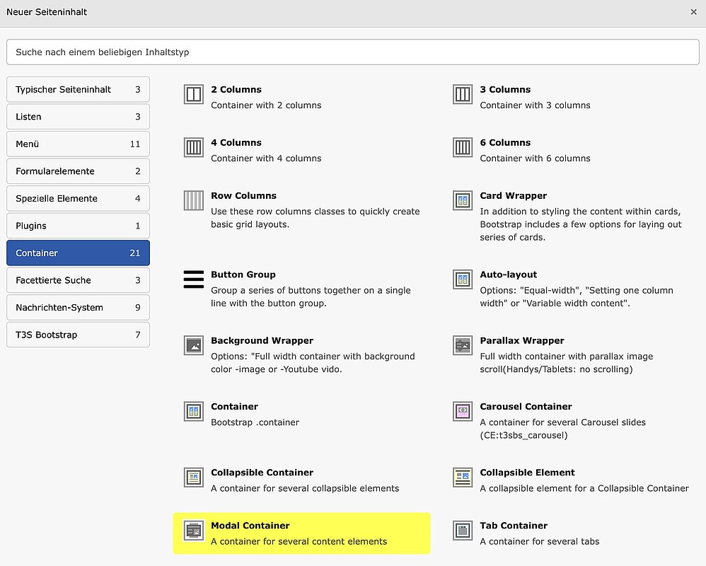 In diesen Behälter können dann beliebig viele Content Elemente eingebunden werden.