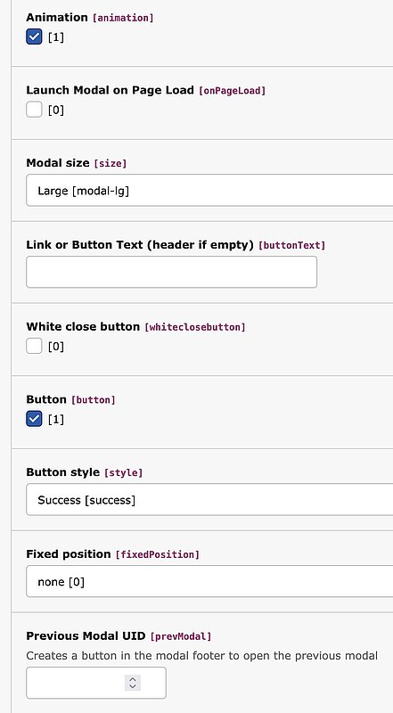 Hier kannst Du entscheiden, ob der Link für das Modal als a-Tag oder als Button ausgegeben wird.