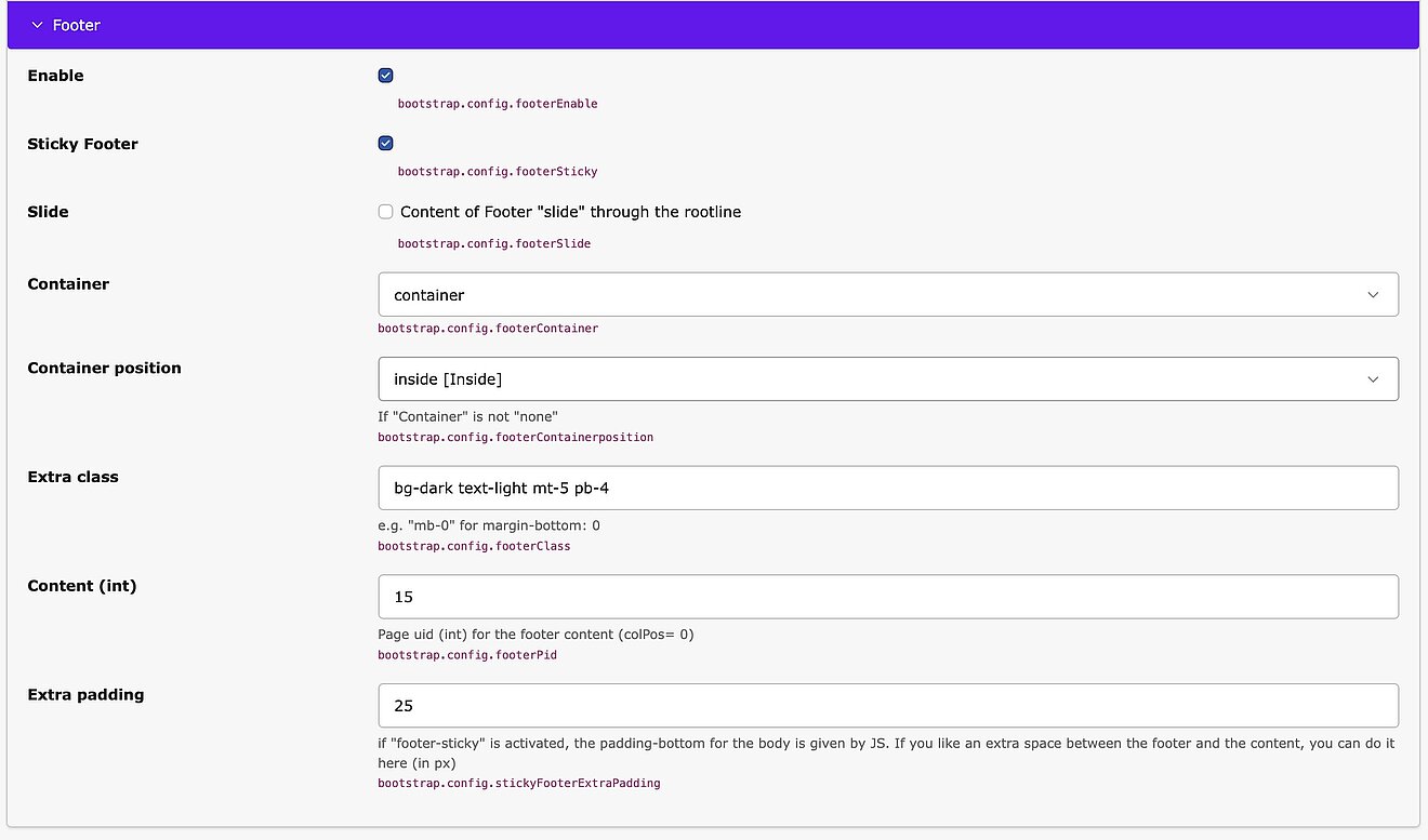 Im BE Modul "T3SB Config" Footer->Slide aktivieren!